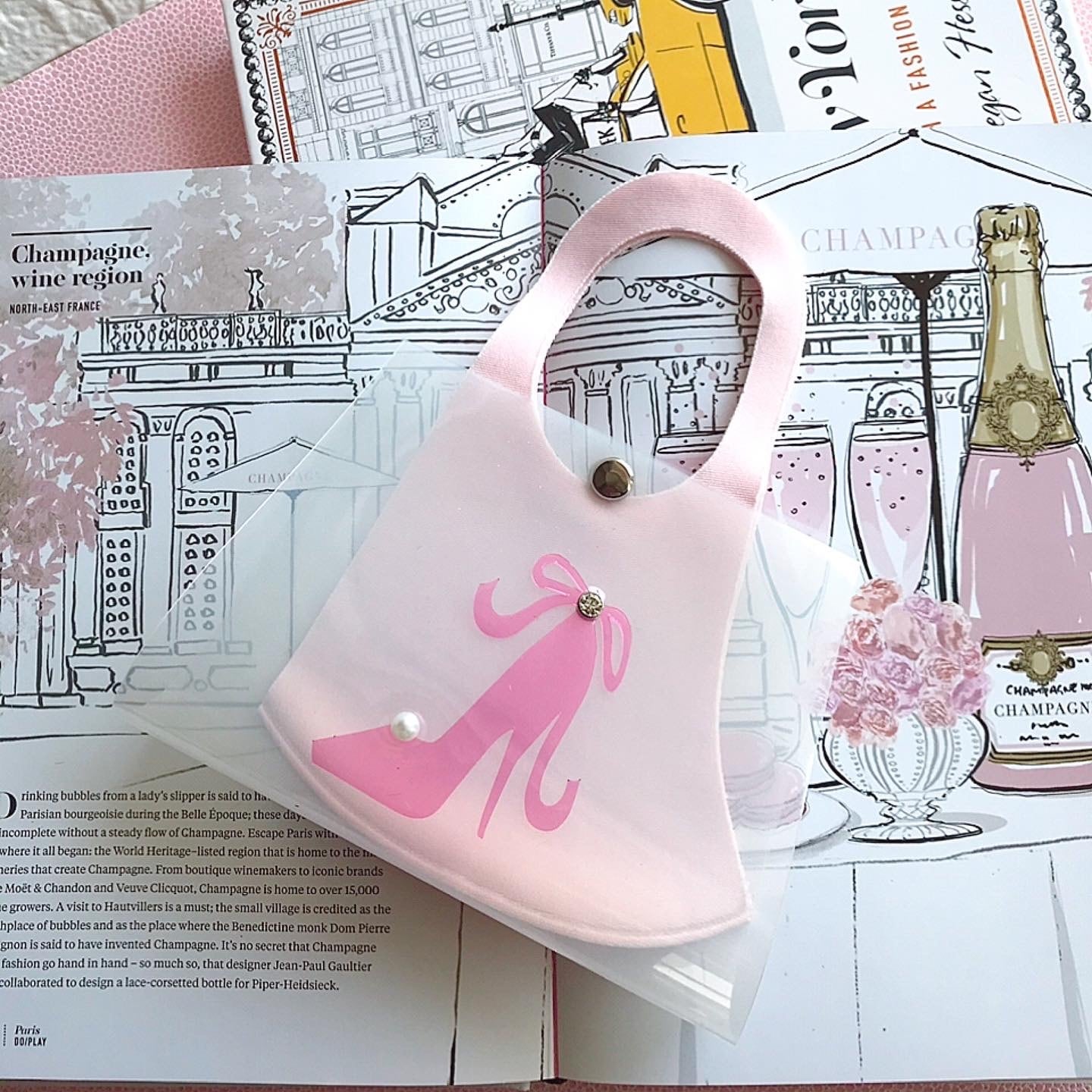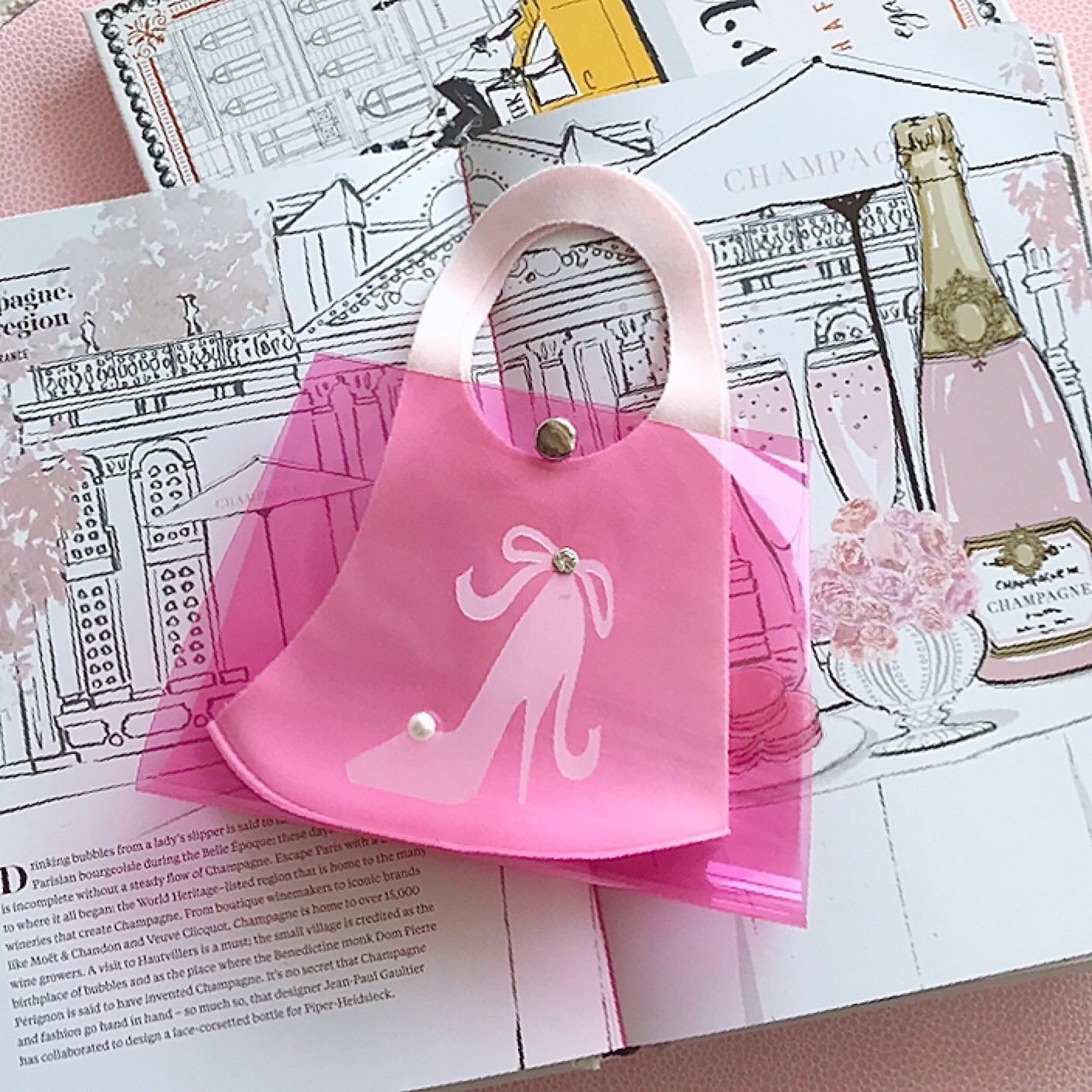 バッグをイメージした、同素材のビニールシートのお花をあしらった可愛いマスクケース。