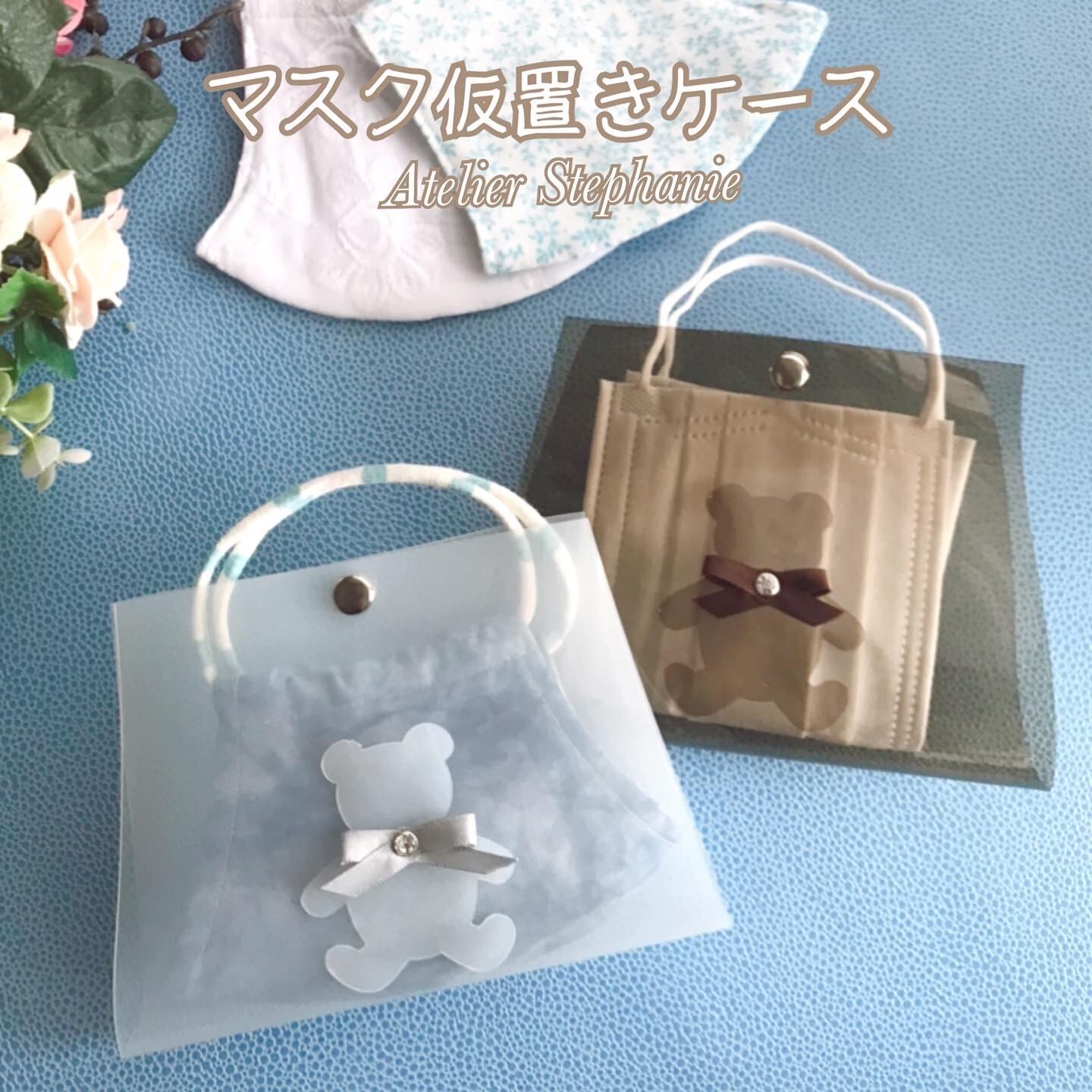 ◆バッグをイメージした、同素材のビニールシートのお花をあしらった可愛いマスクケース。
